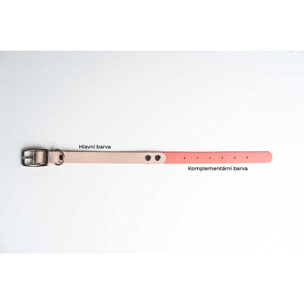 Dvoubarevný psí obojek šířky 19 mm je ideální volbou pro střední pejsky (cca od 10 kg do 25 kg). Materiál je velmi příjemný na dotek, netahá srst a nezpůsobuje žádné známé alergie, což z něj dělá perfektního parťáka i pro citlivé psy.