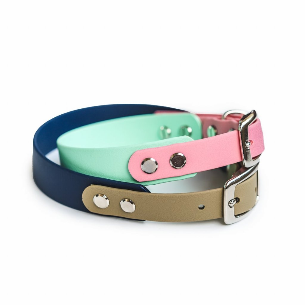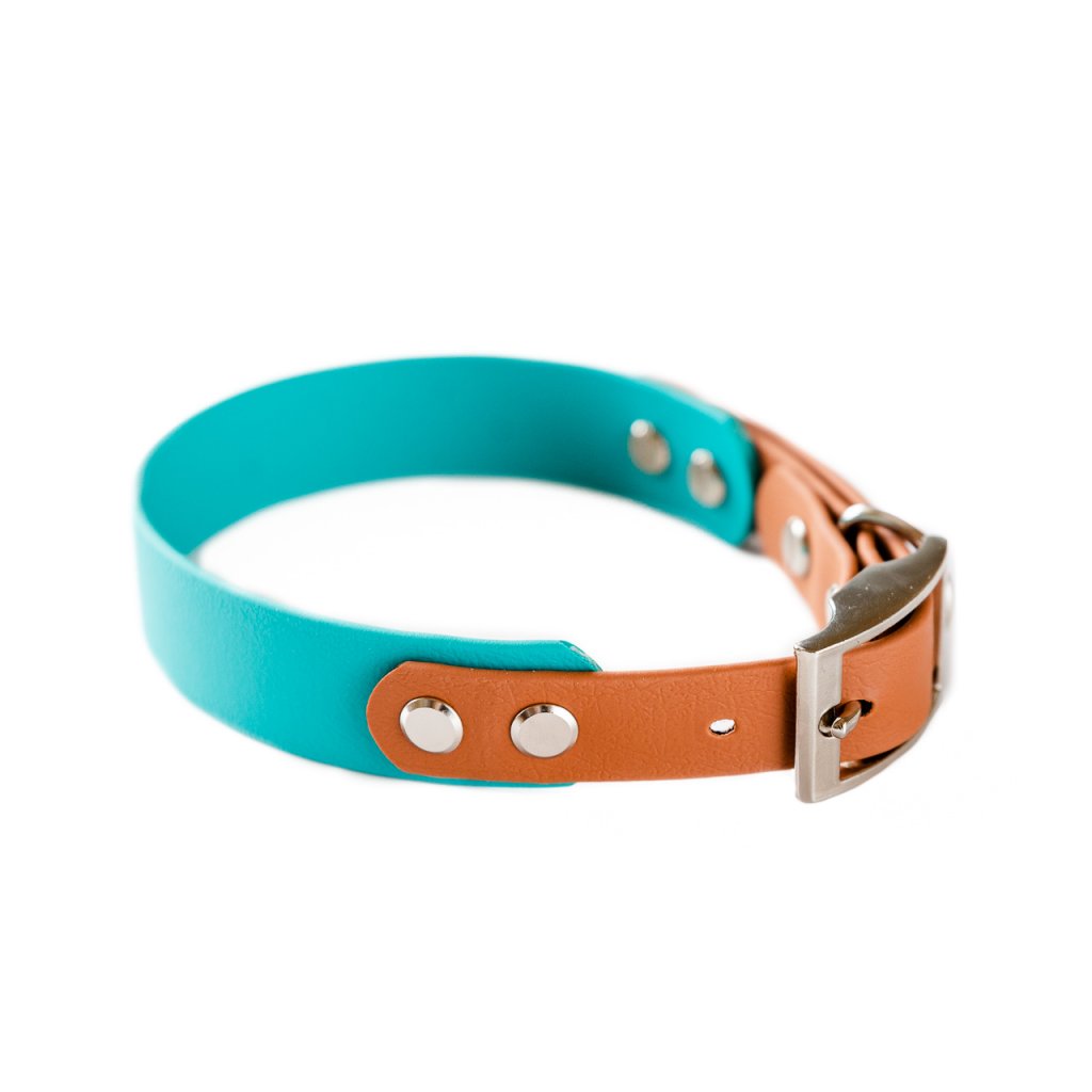 Dvoubarevný obojek pro psy kombinující dvě šířky popruhu pro maximální pohodlí psa a snadnou manipulaci. Hlavní, širší část (25 mm) lépe rozkládá tlak na krk, zatímco užší část (19 mm) zajišťuje pohodlné zapínání na přezku. Obojek nenasákne vodu, neudržuje pachy a je plně omyvatelný. Ideální volba pro každodenní venčení v městě i náročné výlety do přírody.