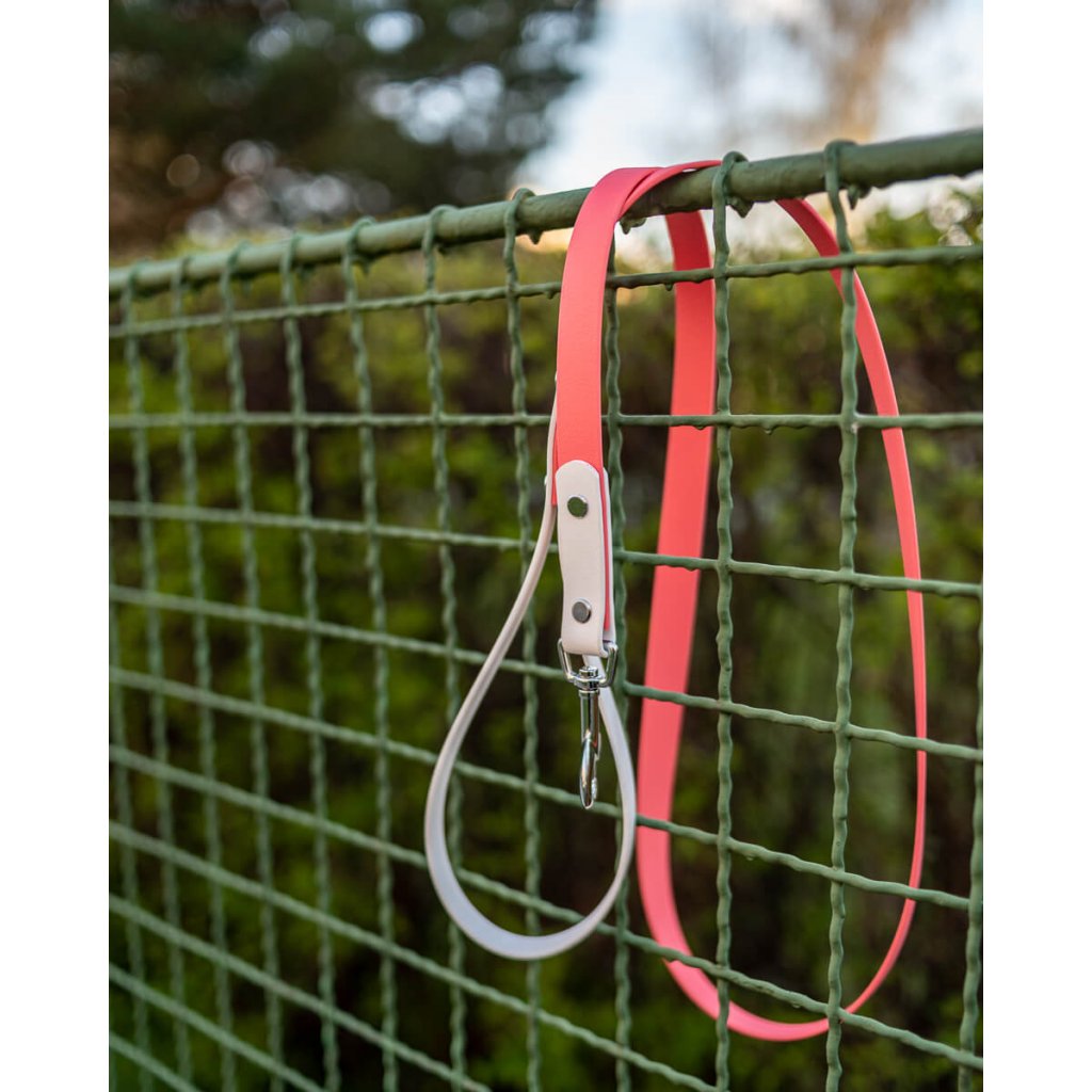 Stylové dvoubarevné vodítko pro psy z originálního materiálu BioThane® o délce 150 cm a šířce 19 mm. Tato šířka je ideální volbou pro střední a větší pejsky (cca od 20 kg). Psí vodítko kombinuje design s maximální funkčností – je příjemné do ruky, extrémně pevné a 100% odolné vůči vodě i nečistotám. Udělá parádu v městských ulicích i na divokých procházkách v přírodě.