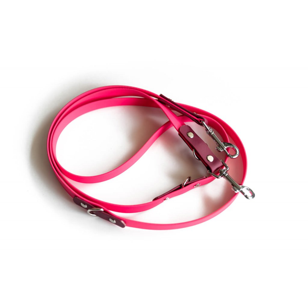 Stylové přepínací vodítko pro psy z originálního materiálu BioThane® v šířce 19 mm. Tato šířka je ideální volbou pro střední a větší pejsky (nad 20 kg). Přepínací vodítko je velmi multifunkční, jelikož jej můžete zapnout mnoha způsoby – jako dlouhé vodítko s ručkou, kolem pasu, kolem těla nebo s ním můžete vést i dva psy zároveň! Vodítko je z příjemného materiálu, který je ale zároveň velmi pevný a snadno omyvatelný. Nenasáká pachy, nebarví a je plně voděodolné. Udělá parádu ve městě i na procházce v přírodě.